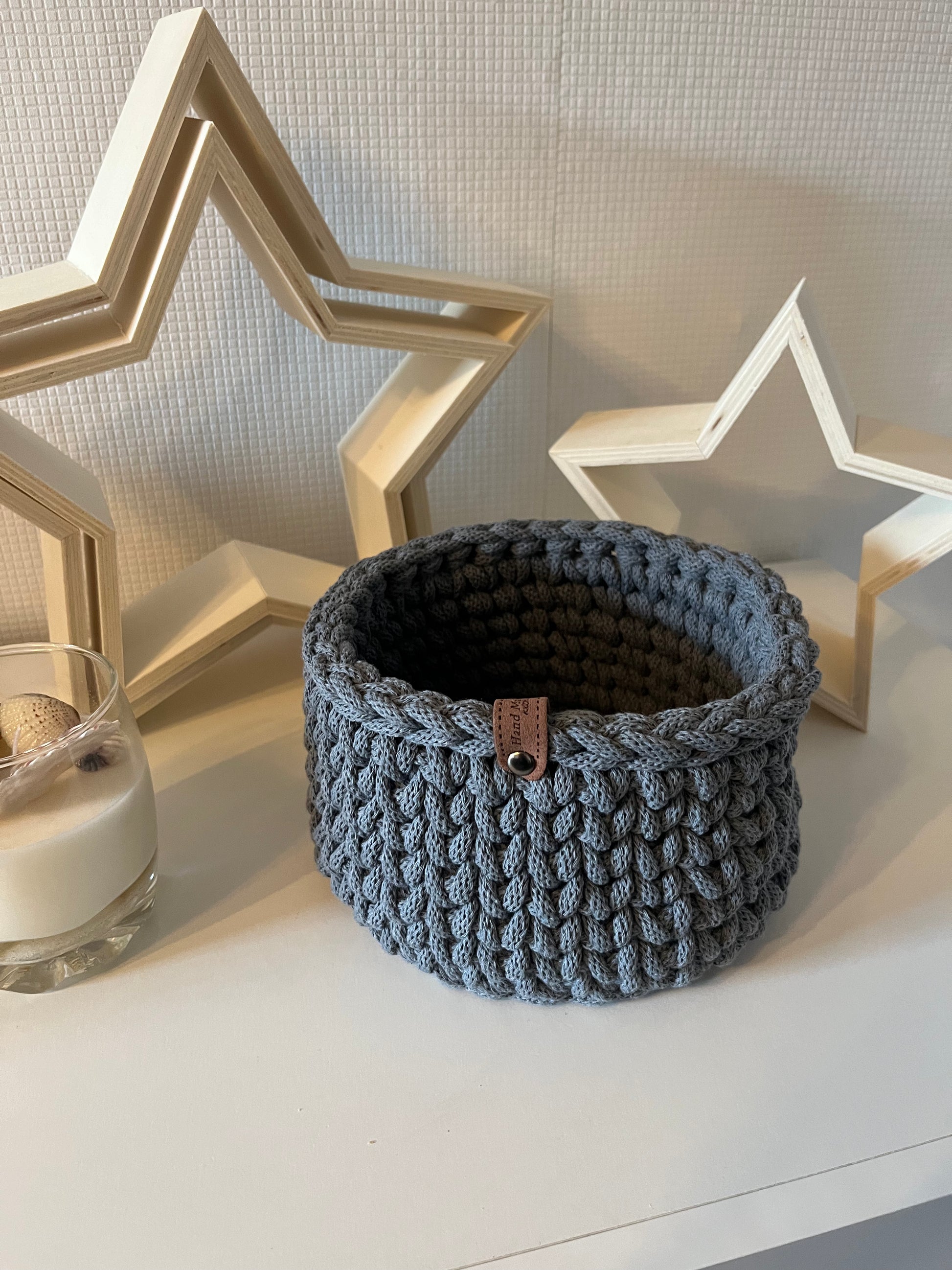 Ein Aufbewahrungswunder für Küche, Bad oder Kinderzimmer. Diese Häkelkörbchen habrn einen Durchmesser von ca. 12 bis 16 cm und eine Höhe von ca 8 -10 cm. Jedes Körbchen wird individuell gefertigt und kann in Größen abweichen.